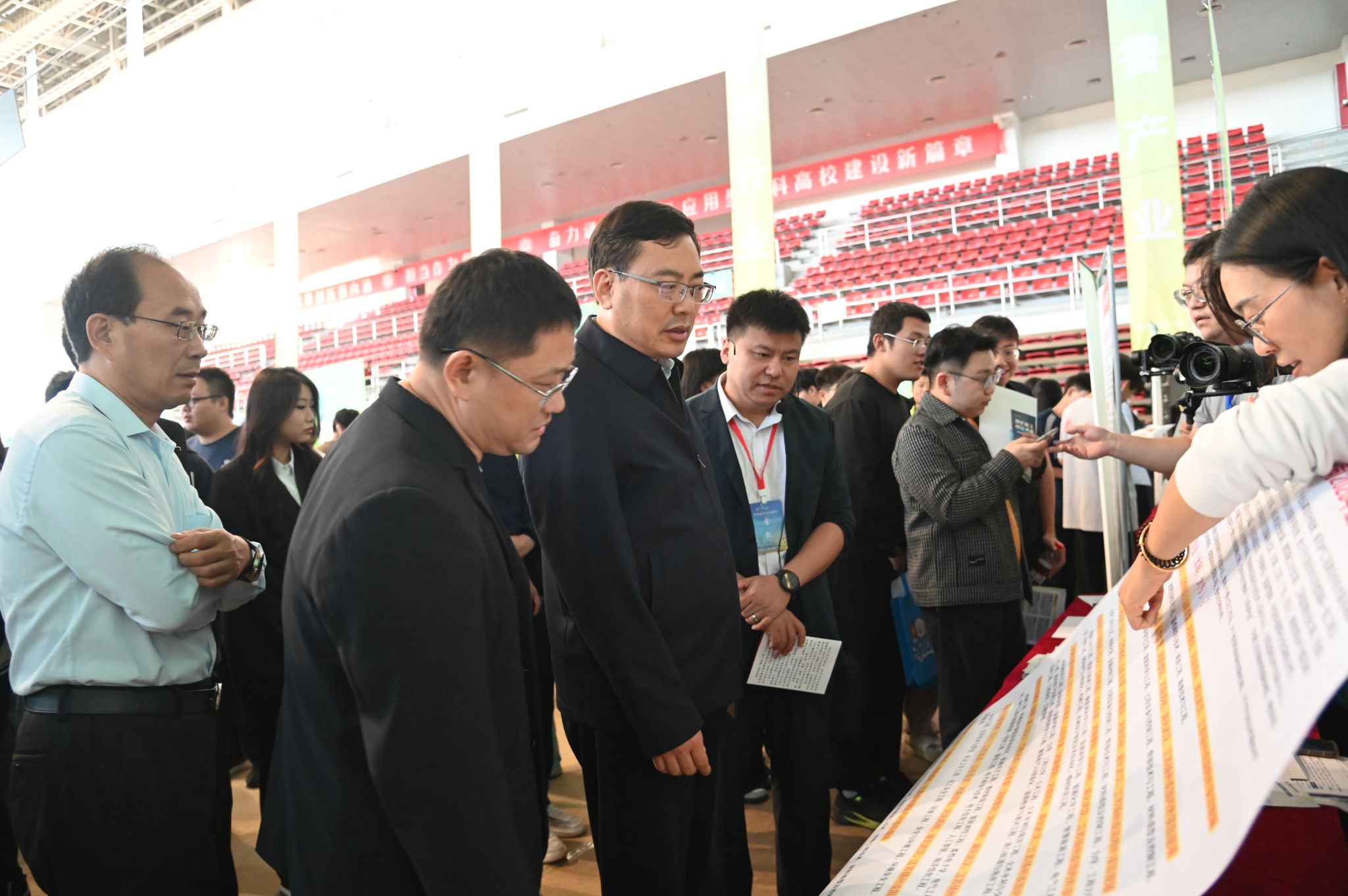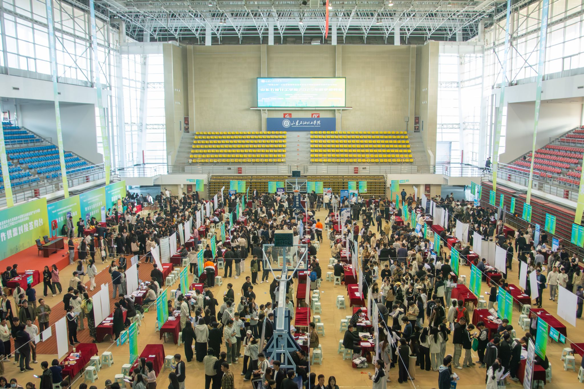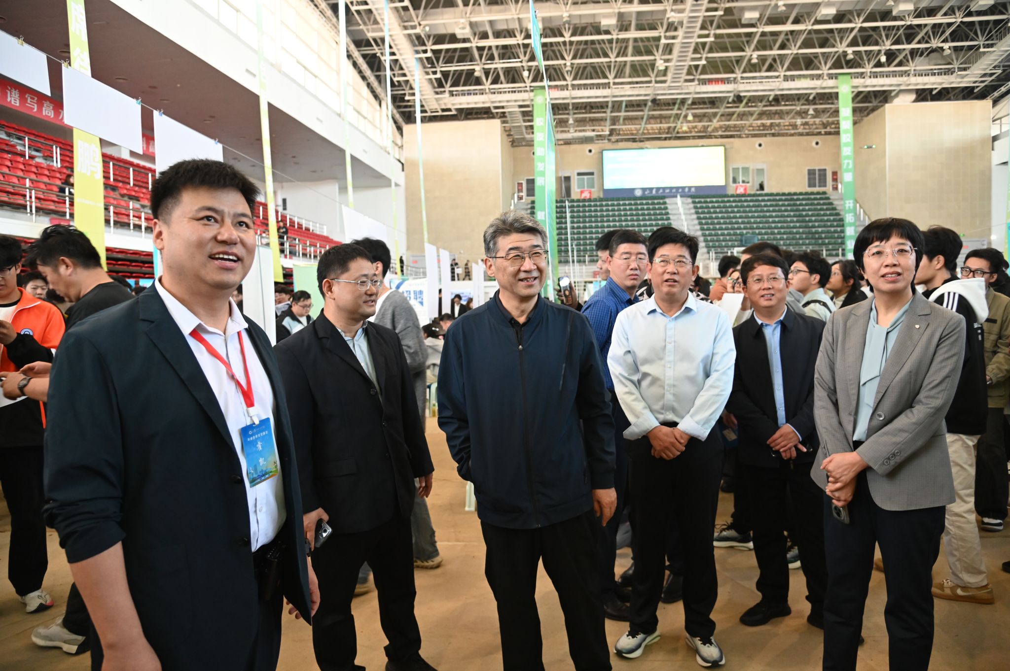 10月14日,2025年“就选山东”省级集中招聘活动新能源产业专场在学校体育馆举办。校党委书记孟晓雷、党委副书记、校长冯其红,东营市人社、工商联及东营区政协相关领导莅临现场。