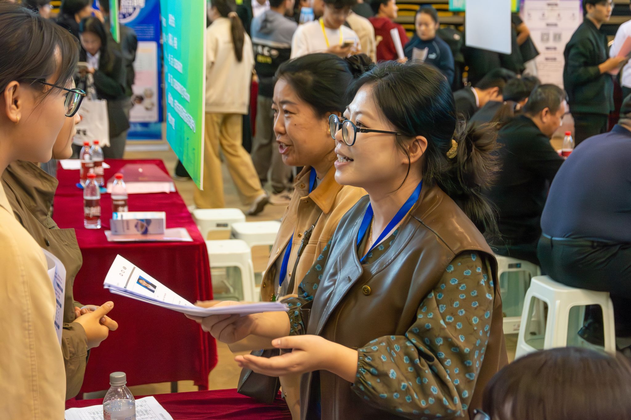 招聘会现场人头攒动,精彩纷呈,“应征入伍及军队文职”“考研及出国留学”“考公考编”“央国企就业”“图书馆免费资源共享”等功能区各显身手,为毕业生提供多元化选择。“优秀校友说”、“青岩榜样自荐”视频和简历展播环节,让学生获得更多企业关注,签约台上达成合作意向的砸蛋、敲锣声此起彼伏。2269名毕业生现场参与,2951人次参与萌新职介所线上互动,投递简历6212份,达成初步签约意向621人。
