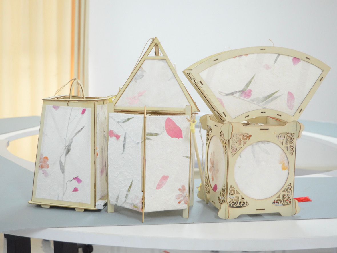 活动伊始,王靖惠围绕灯笼的历史文化渊源和制作方法向在场同学进行了详细介绍。从灯笼在古代节日中的璀璨登场,到其承载的吉祥寓意与美好祝愿;从传统灯笼的多样造型,到制作过程中的精妙技巧,每一个细节都讲解得丝丝入扣,让同学们对灯笼这一传统物件有了更为全面和深入的认识。制作过程中,同学们以小组为单位,巧妙结合主题,充分发挥想象力,胶水精准涂抹,流苏轻盈点缀,将现代审美与传统技艺相结合,十余盏造型不同的灯笼在同学们的手中逐渐成型。同学们在沉浸式的手工体验中,真切感受到了文化传承在当代所焕发出的独特价值与无限魅力。