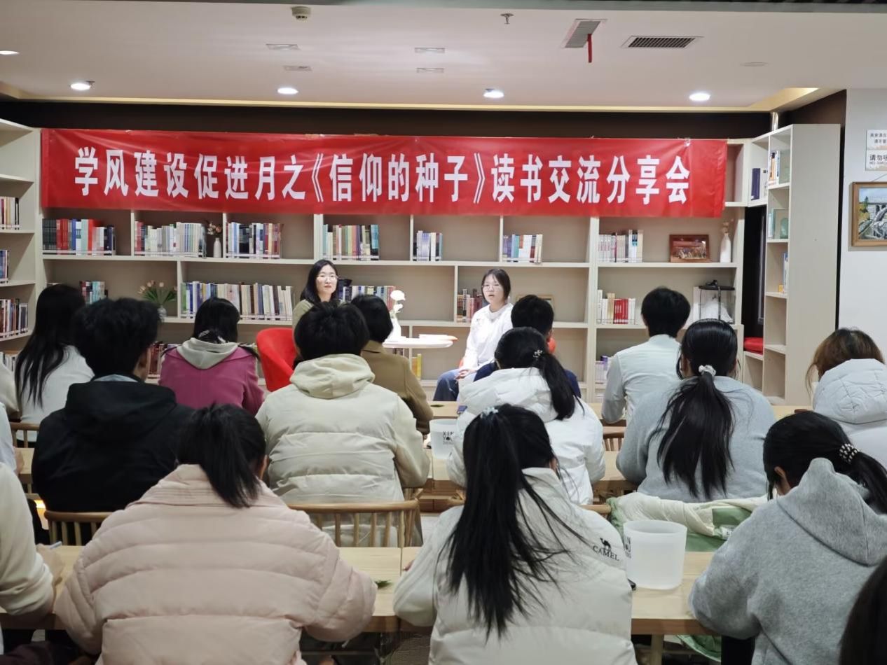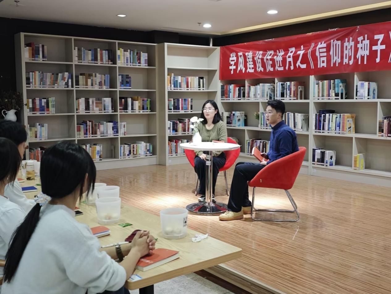 为强化学风建设,筑牢学生信仰根基,营造潜心向学的浓厚氛围,11月25日,学生工作处联合图书馆举办了学风建设促进月之《信仰的种子》读书分享会。图书馆馆长王晓勇和师生代表30余人参加活动。
