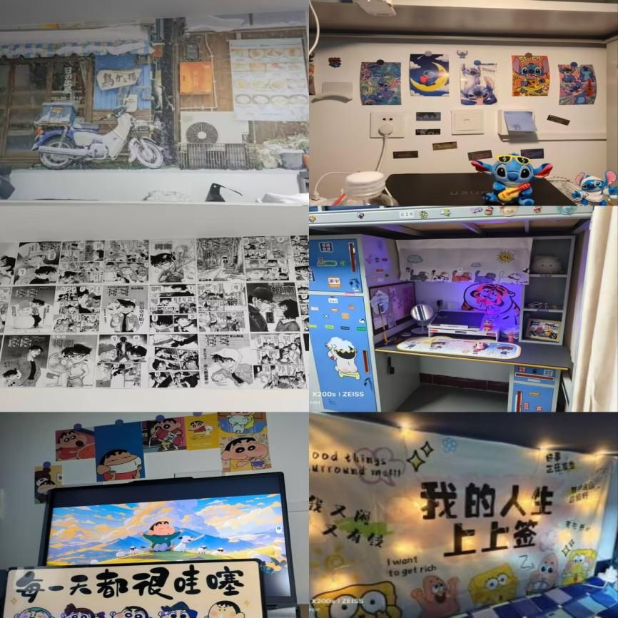 “装扮‘宿’颜,点亮‘室’界”最美宿舍装扮大赛:同学们以创意为笔,以团结为墨,将宿舍空间打造成各具特色的温馨家园。有的宿舍以天空为主题,用云朵挂饰和蓝色纱幔营造出梦幻氛围;有的宿舍主打简约风,通过统一的收纳盒和墙面装饰展现整洁之美;还有的宿舍将自己的爱好融入设计,用可通元素与励志文字装饰墙面,彰显同学们的青春活力。每一间参赛宿舍都凝聚着室友们的心血与智慧,让简单的居住空间焕发出独特的青春气息。