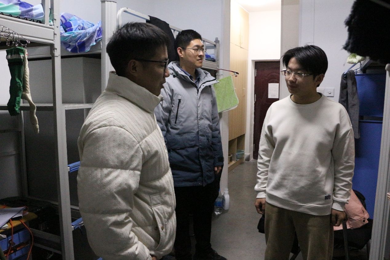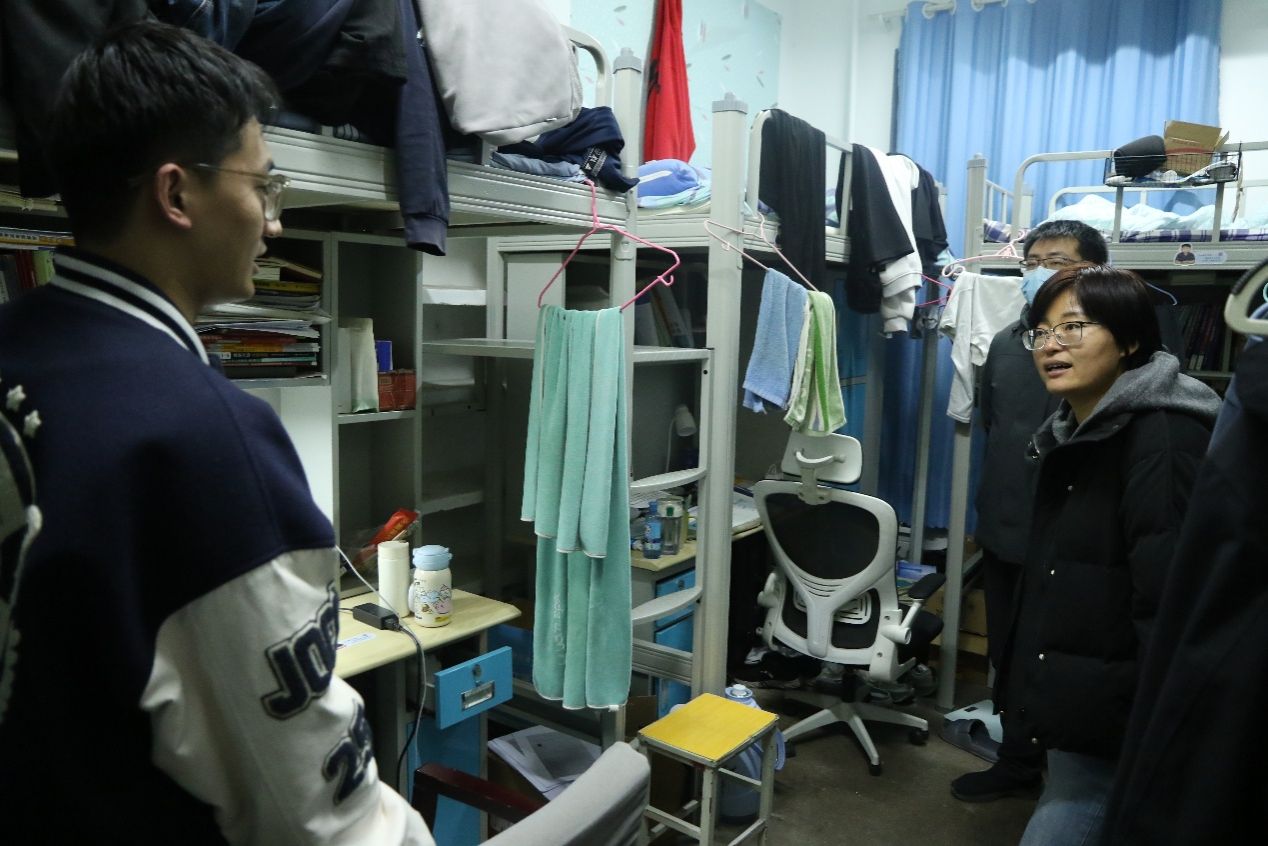 为进一步强化学生宿舍管理,落实学校《关于进一步加强学生夜间归寝管理的工作提醒》要求,切实筑牢安全防线,12月11日晚,智能制造与控制工程学院院长助理、学工办主任姜磊及全体辅导员走访学生宿舍开展夜间归寝专项检查,并围绕宿舍卫生、安全及学业状况与同学们展开深入交流。