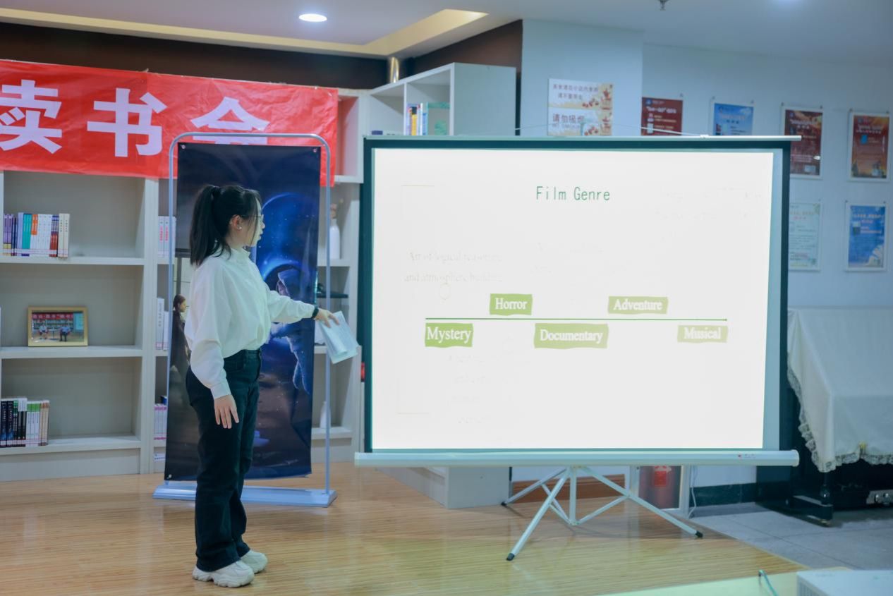 成果展示环节成为活动的一大亮点。每组选派代表上台推荐小组热议的优秀电影,结合核心推荐理由与经典片段解读,展现了彼此独特的英语表达能力与观影视角。展示结束后的互动提问环节,各小组用简单英语相互提问,进一步深化了对影片的理解,也锻炼了即时应答能力。
