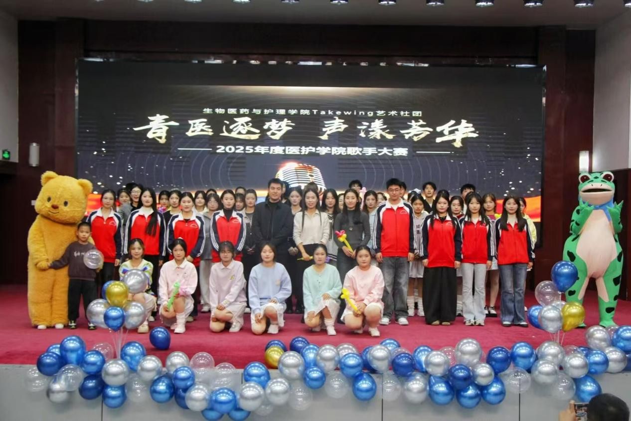 为营造积极向上的校园文化氛围,充分展现我院学子的青春风采,11月21日晚,生物医药与护理学院在音乐厅举办“青医逐梦,声漾芳华”歌手大赛活动。活动由学生工作办公室主任武利敏,2024级辅导员韩星堂,2025级辅导员姚新萌以及2024级、2025级部分学生参加。