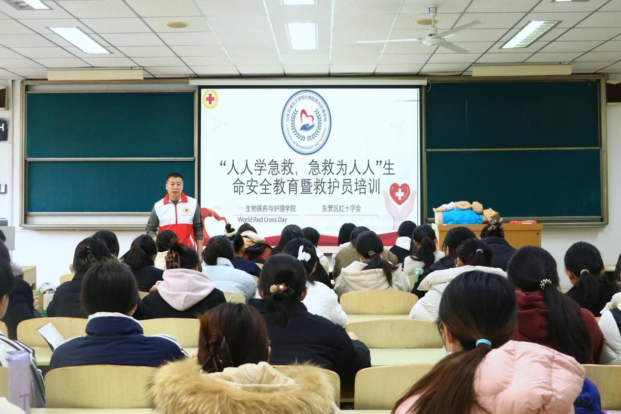 为普及急救知识,提升同学们应急处置能力,11月16日,生物医药与护理学院爱心天使志愿者服务队在第四教学楼4110教室开展“人人学急救,急救为人人”生命安全教育暨救护员培训活动。活动由2024级、2025级学生参加。