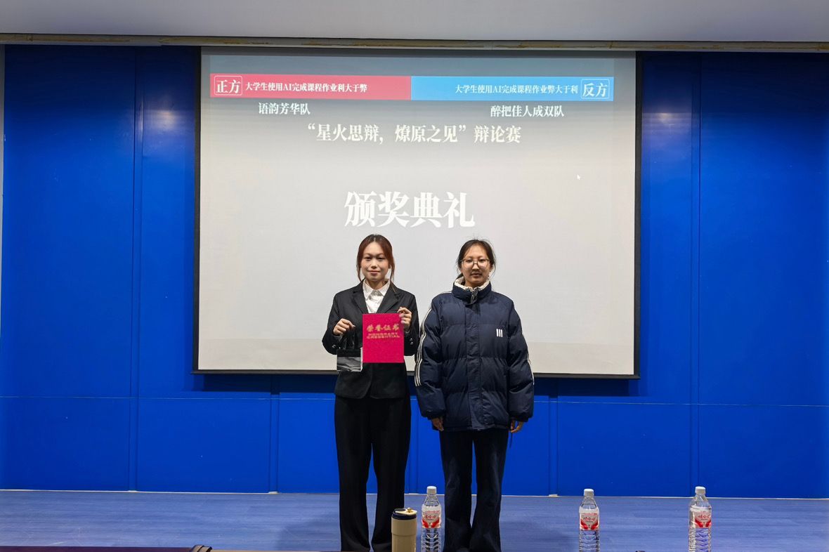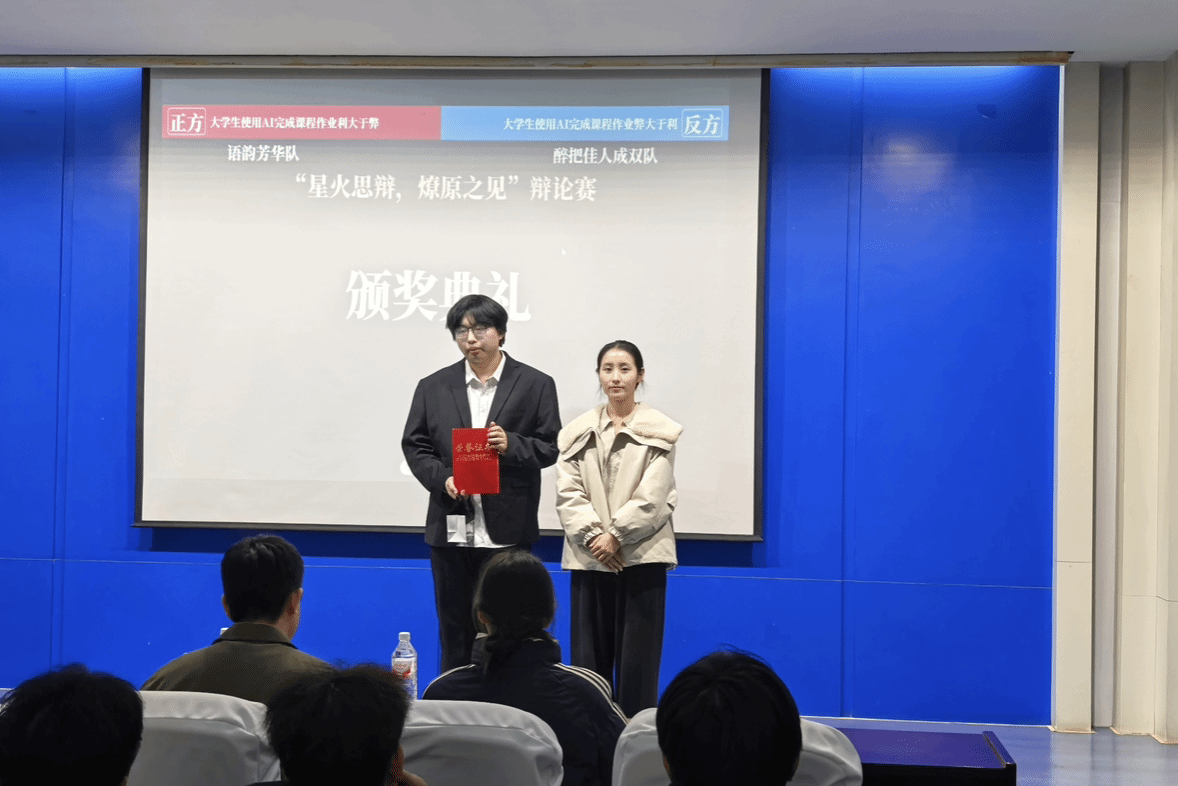赛场上,双方辩手围绕“大学生使用AI完成课程作业利大于弊还是弊大于利”展开激烈辩论,双方辩手在立论、质询、自由辩论与总结陈词等环节中,展现出扎实的学识素养和优秀的团队协作能力。最终,2024级护理学三班获得冠军,2024级护理学一班获亚军,2024药学一班获季军,2024级护理学一班张毅辉获“最佳辩手”称号。