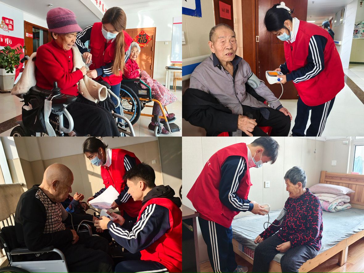 在东赵社区老年公寓,志愿者们与社区工作人员紧密配合,围绕老年人的健康需求开展“一站式”服务。志愿者们耐心引导老人,开展血压测量、健康咨询等基础服务,并针对冬季养生、慢性病防护等话题向老人们分享实用健康保健知识。