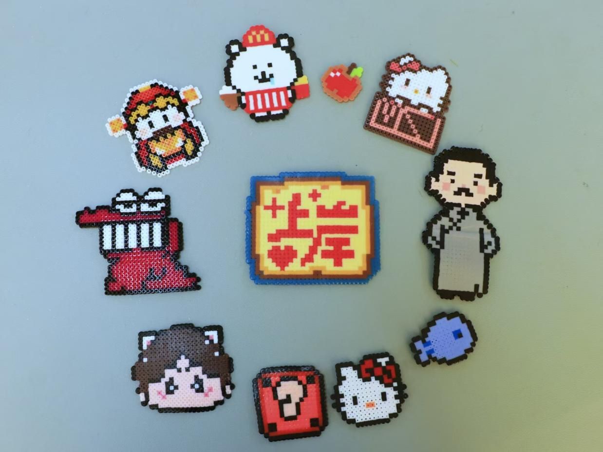 活动伊始,商文婧同学化身“拼豆小导师”,从拼豆的起源故事娓娓道来,让同学们了解到这一手工艺术背后的文化底蕴。接着,她详细介绍了物料准备环节,各类色彩斑斓的拼豆、小巧精致的模板、实用的熨烫工具等一一陈列。在创作环节中,同学们纷纷化身“创意魔法师”,充分发挥想象力与动手能力,通过灵活创意的色彩搭配,一个个独具创意的拼豆作品在同学们的巧手下逐渐成形。她们相互展示拼豆作品,交流创作心得,分享这份手工拼豆的喜悦与成就感。