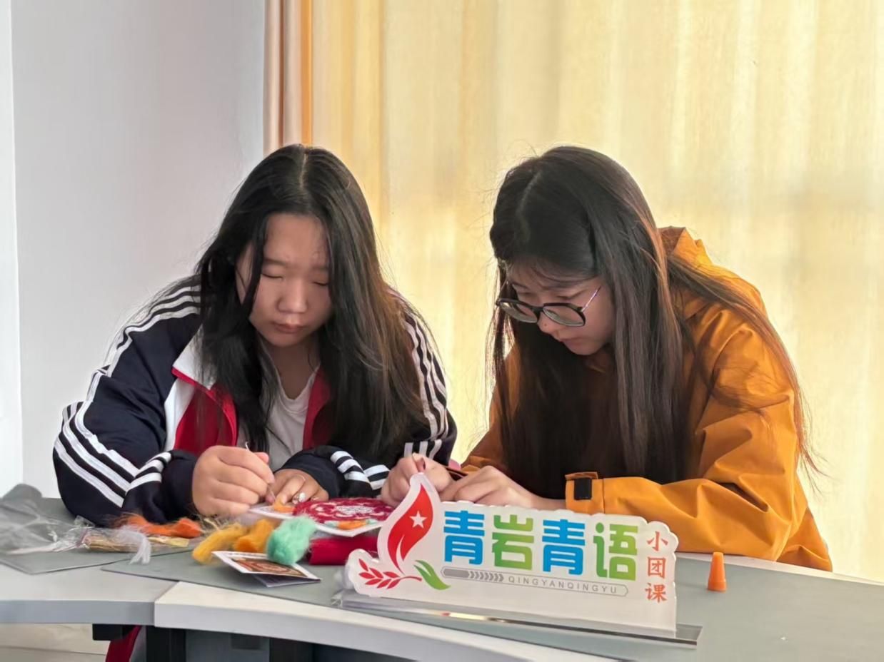 活动开始,李亚轩向在场同学们详细介绍了戳羊毛的制作核心要点,从羊毛的挑选、戳针的使用技巧到基础造型的戳制要领,都体现出传统手工艺的奇妙。同学们取出羊毛与戳针,跟着步骤铺毛、戳压、塑形、调整,指尖起落间,一个个蓬松可爱的戳羊毛作品在同学们手中慢慢成形。