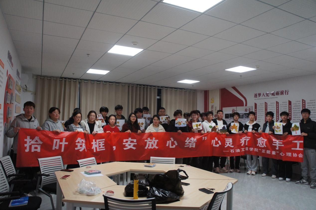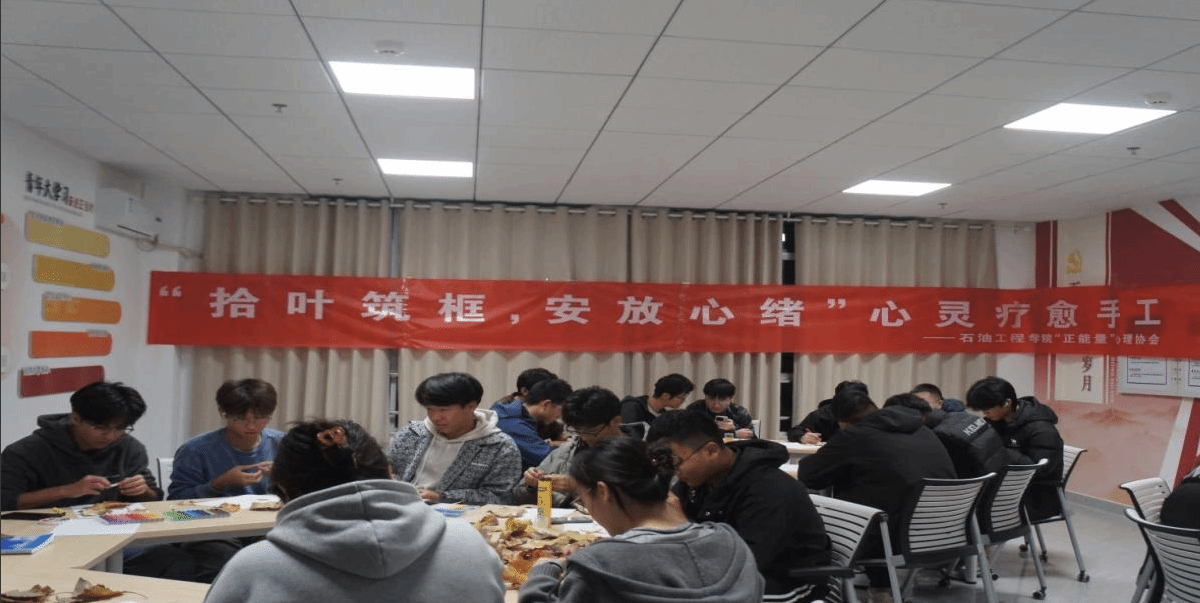 深秋时节,秋叶斑斓,恰是疏解压力、疗愈心灵的好时节。为帮助同学们缓解学业带来的紧张情绪,搭建交流互助的平台,守护青年学子心理健康,石油工程学院正能量心理协会于11月20日在学生社区学16楼党团活动室开展“拾叶筑框,安放心绪”拾叶DIY心灵疗愈手工活动。本次活动让同学们在与自然的对话、手工的创作中,解锁一段治愈时光。