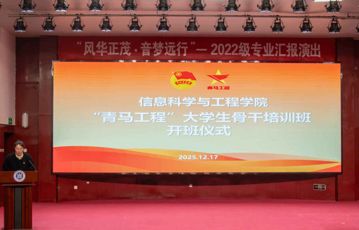 青春逢盛世奋斗正当时。为深入培养青年马克思主义者,筑牢青年学生的理想信念根基,12月22日下午16:00,信息科学与工程学院“青马铸魂·智启信程”2025-2026学年“青马工程”大学生骨干培训班开班仪式在图书馆报告厅隆重举行。学院领导、教师团干部与全体青马学员齐聚一堂,一同开启这一青春启航的重要篇章。