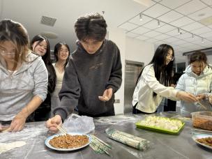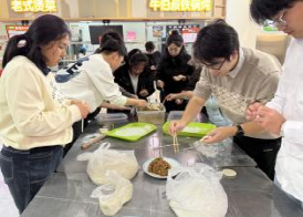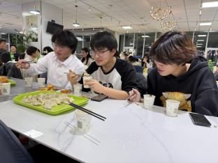 当晚,“暖冬饺子宴”在学校第三食堂温情举行。同学们分工协作,揉面、擀皮、调馅、包饺,动作娴熟、笑语不断。一盘盘饺子陆续成型,经食堂统一烹煮后,大家围坐共享美味,期间穿插的抽奖环节更添惊喜。