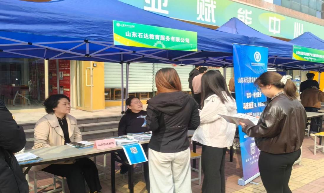 活动吸引了新赛道留学服务、东凯人才留服中心等10家留学机构参与,服务内容涵盖语言培训、留学规划、中外合作办学申请等多个方面。现场采用集中宣讲与一对一咨询同步进行的方式,围绕院校选择、语言培训、签证办理等热点问题,为学生提供精准指导。活动共吸引900余名学生参与,部分展位前排起长队,原定两小时的活动延长至四小时。石油工程学院李同学表示:“我一次性了解到35个国家的留学路径,顾问帮我厘清了跨专业申请的迷茫。”山东石达教育服务相关工作人员表示,此次活动精准对接学生发展需求,是学校“一站式、多元化”就业赋能体系的有力补充。